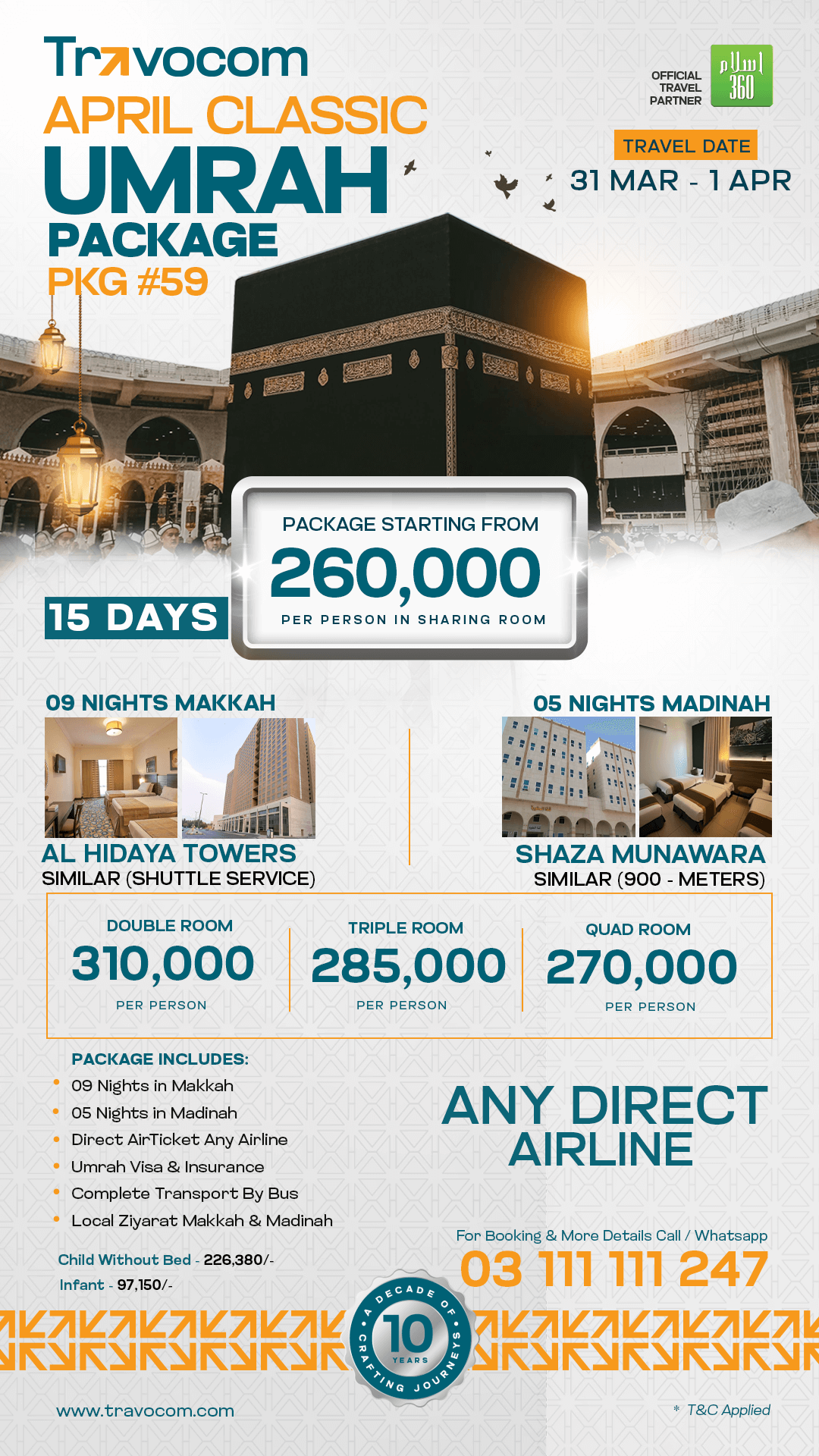 We offer some of the most competitive rates in the market, starting from just 206,000 rupees. Our packages are designed to provide excellent value for money without compromising on quality.